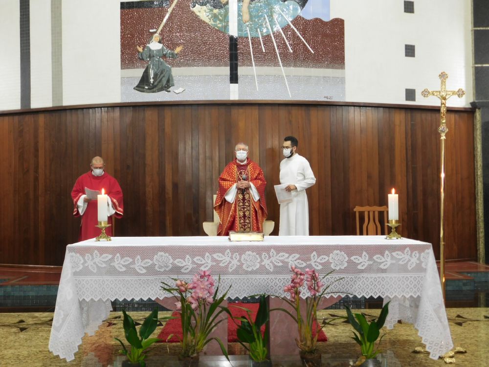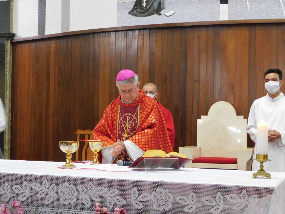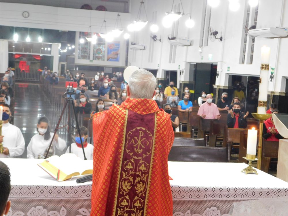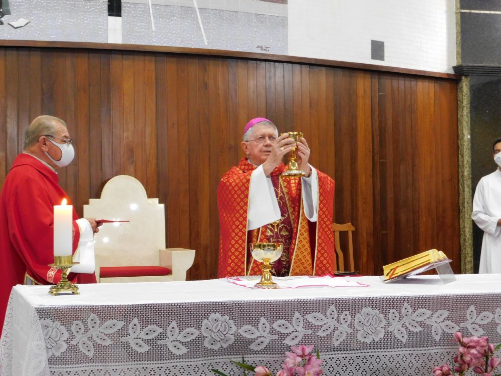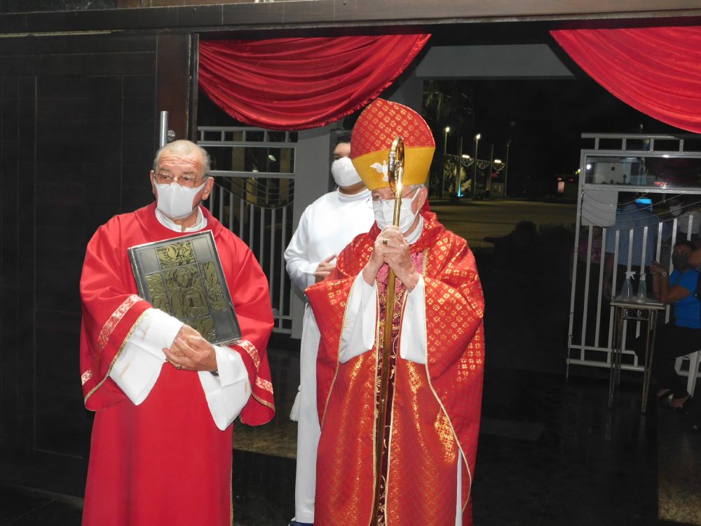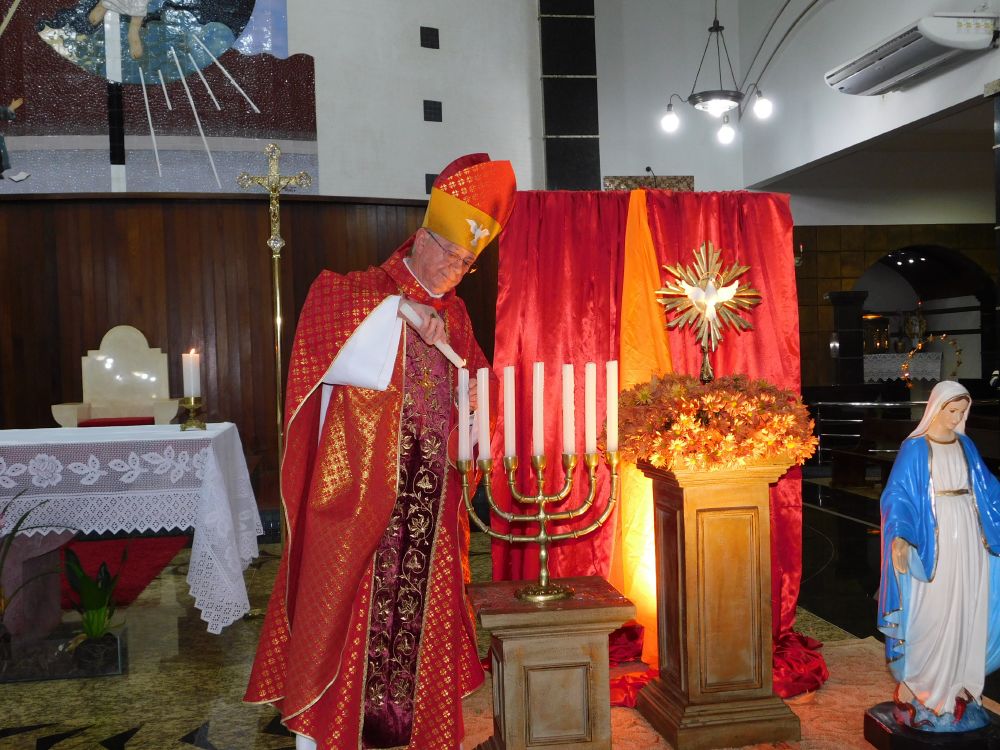 Neste domingo, 31 de maio, Solenidade de Pentecostes, a Santa Missa foi celebrada em quatro horários, com a presença do povo, na Catedral Santa Rita de Cássia, em Itumbiara. O bispo diocesano, Dom Fernando Brochini, presidiu às 19h30.