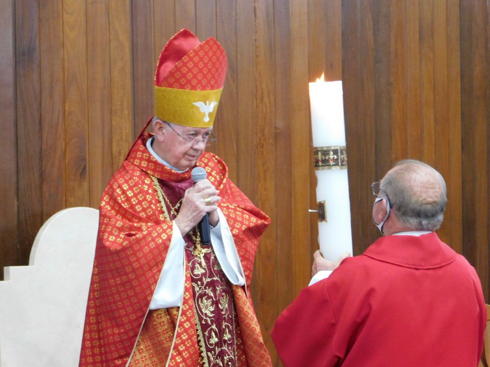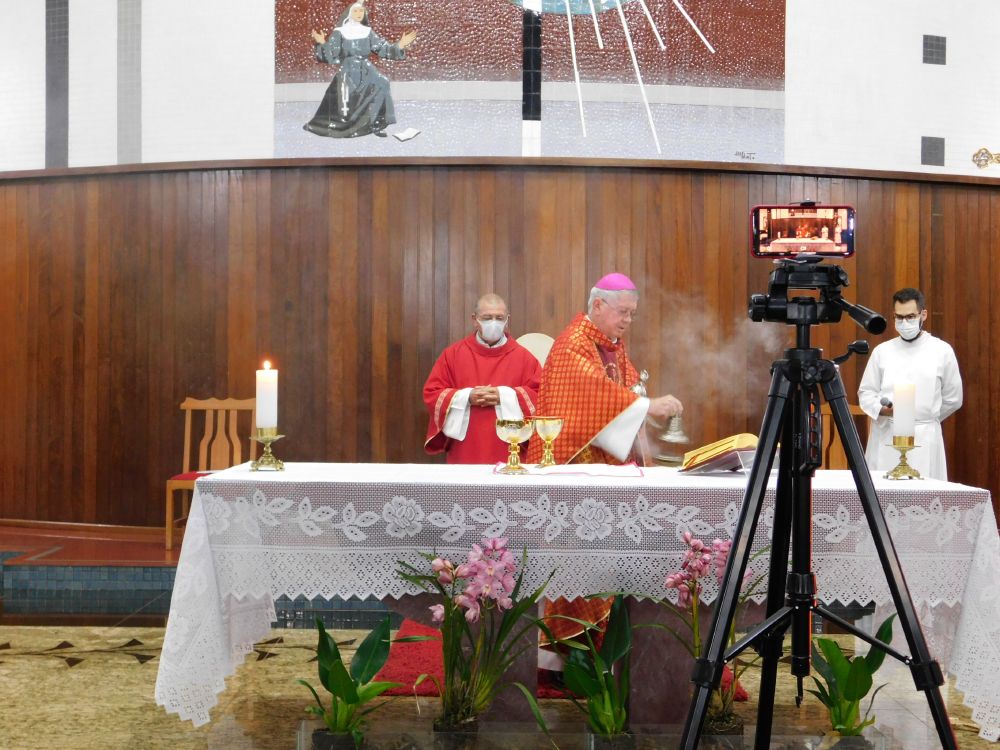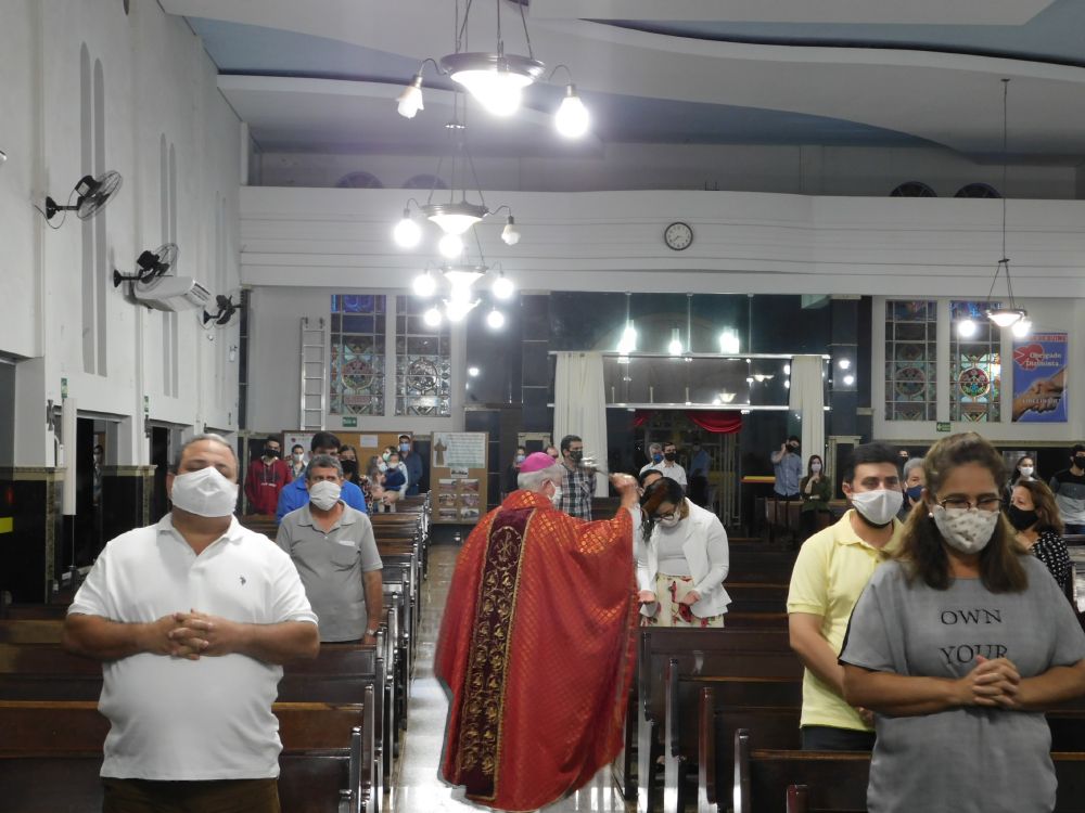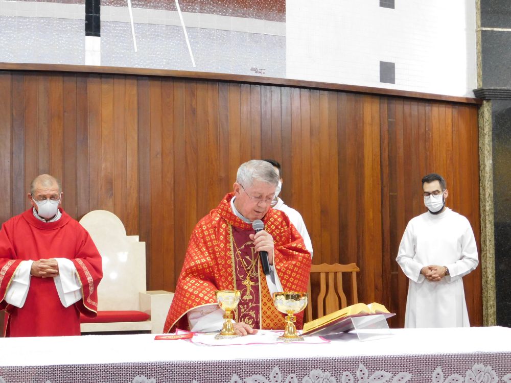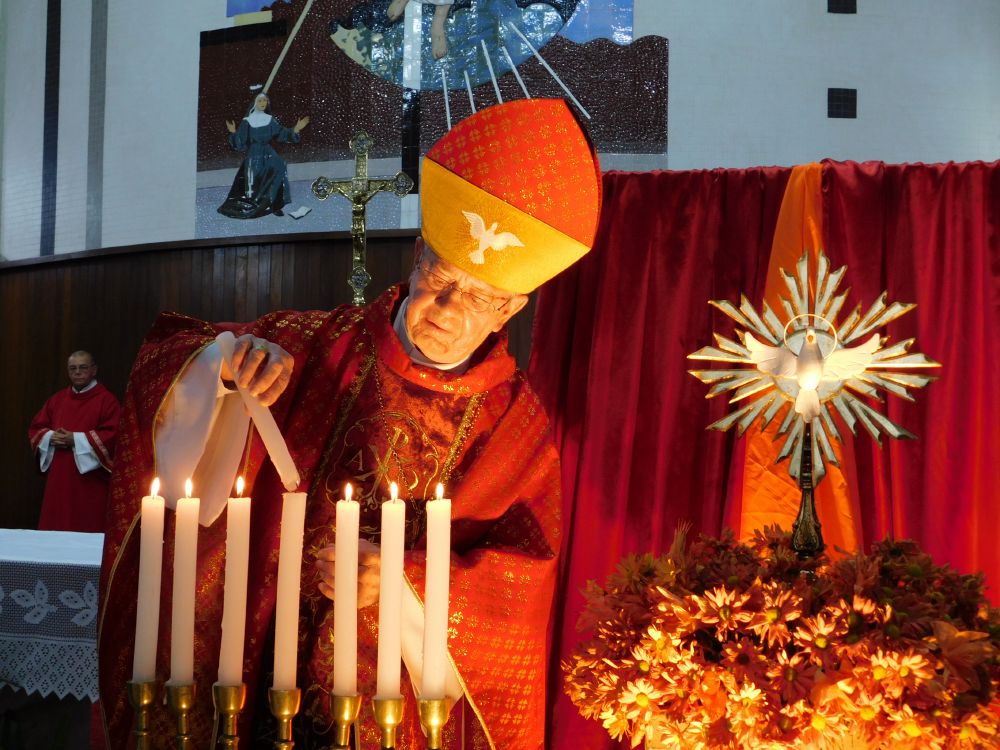 Neste domingo, 31 de maio, Solenidade de Pentecostes, a Santa Missa foi celebrada em quatro horários, com a presença do povo, na Catedral Santa Rita de Cássia, em Itumbiara. O bispo diocesano, Dom Fernando Brochini, presidiu às 19h30.