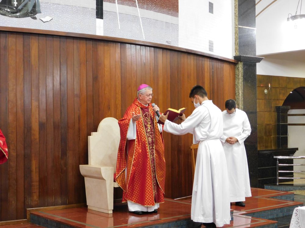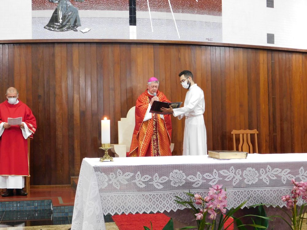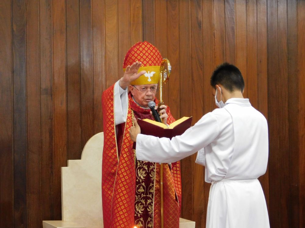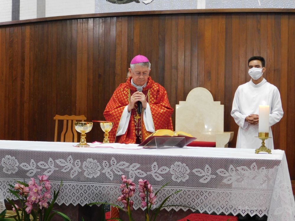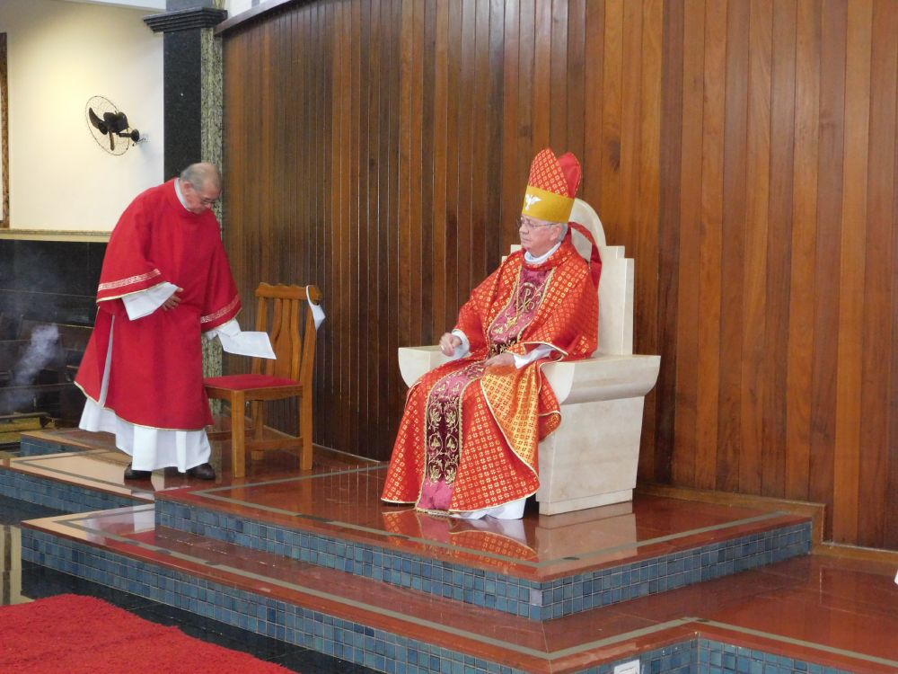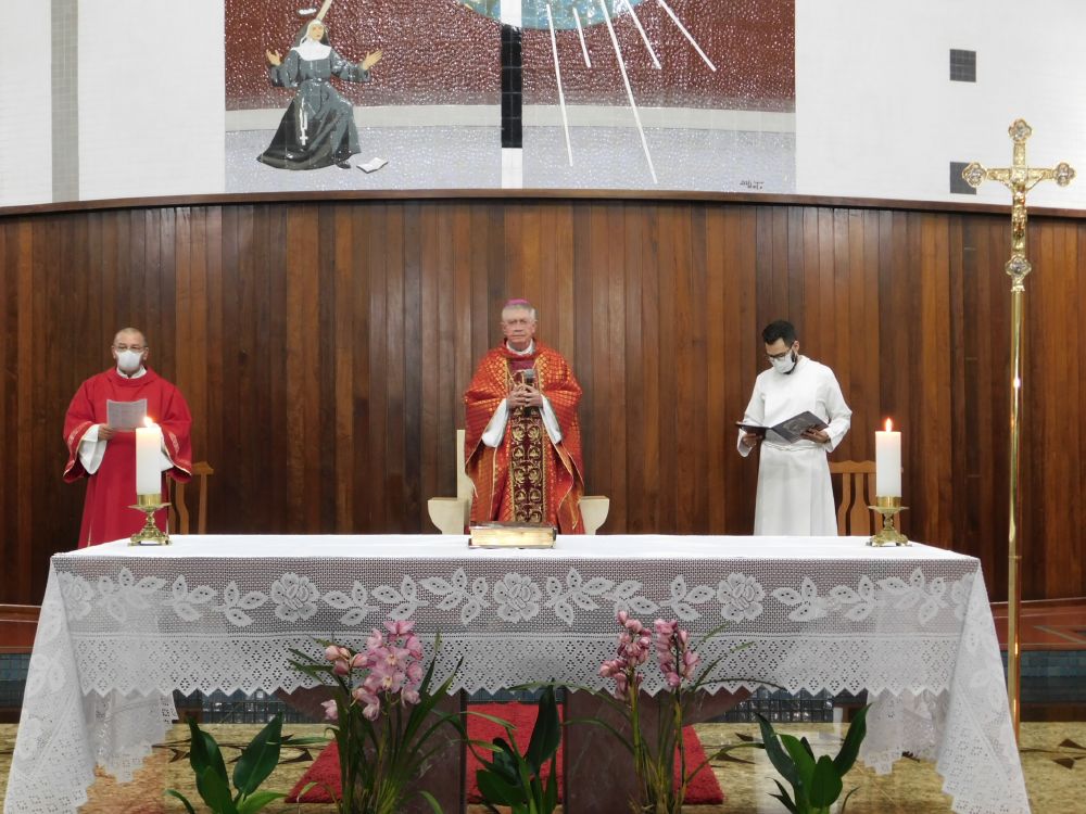 Neste domingo, 31 de maio, Solenidade de Pentecostes, a Santa Missa foi celebrada em quatro horários, com a presença do povo, na Catedral Santa Rita de Cássia, em Itumbiara. O bispo diocesano, Dom Fernando Brochini, presidiu às 19h30.